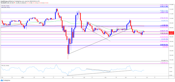 The technical outlook for USD/JPY highlights the potential for a broad based recovery in the Japanese Yen as both price and the Relative Strength Index (RSI) snap the upward trends from earlier this year, but the exchange rate may stage a larger recovery going into July as it reverses ahead of the May low (105.99).